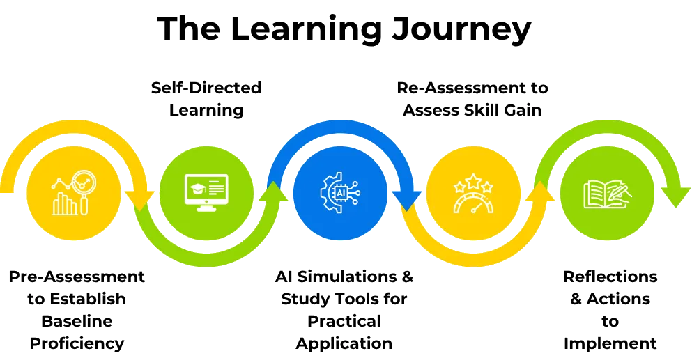 • Applied practice through AI simulations and exercises